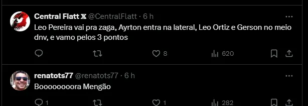 Em contrapartida, Fabrício Bruno entrou na lista de desfalques do Rubro-Negro. No jogo mais recente, o zagueiro recebeu o 3° cartão amarelo, terá que cumprir a suspensão automática.