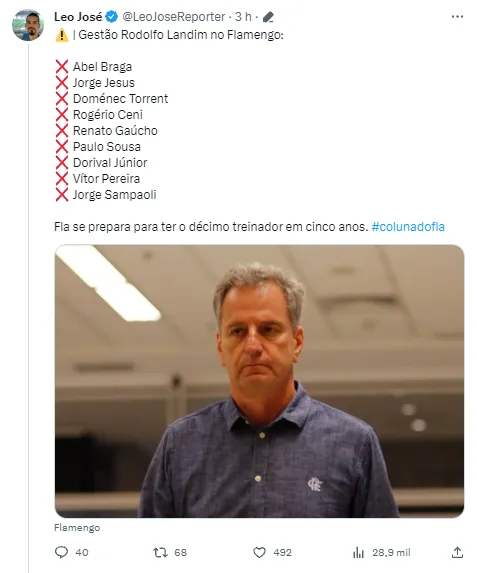 O Flamengo está perto de definir o novo treinador da equipe para a temporada de 2024. O nome mais cotado é Tite, que segue com alguns poucos detalhes a serem acertados antes do anúncio. Apesar do medo da Nação em ver mais um negócio frustrado no time da Gávea, o treinador ex-Seleção Brasileira só estaria discutindo exatamente quando vai de fato assumir a equipe: agora ou na próxima temporada. Enquanto isso, um nome antigo volta ao Rio de Janeiro.