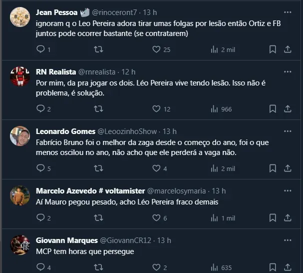 Ele ainda prosseguiu: “Formar o lado direito com ele e o Léo Pereira, que tem passe melhor que o Fabrício para sair jogando. Se a preocupação do Tite for ter jogadores com qualidade na saída de bola, tem grandes chances de barrar o Fabrício”, finalizou. A tendência é que Léo seja anunciado nos próximos dias.