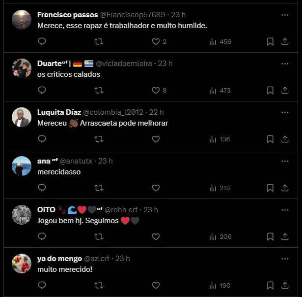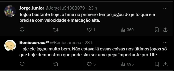“Tenho que fazer um pedido de desculpas. Eu prejudiquei Victor Hugo. Dei uma função que não é usual, não é a melhor dele. Por vezes você quer oportunizar os atletas. Pensei: deixa eu ver como segundo meio-campista central com o De La Cruz à frente“, comentou Tite.