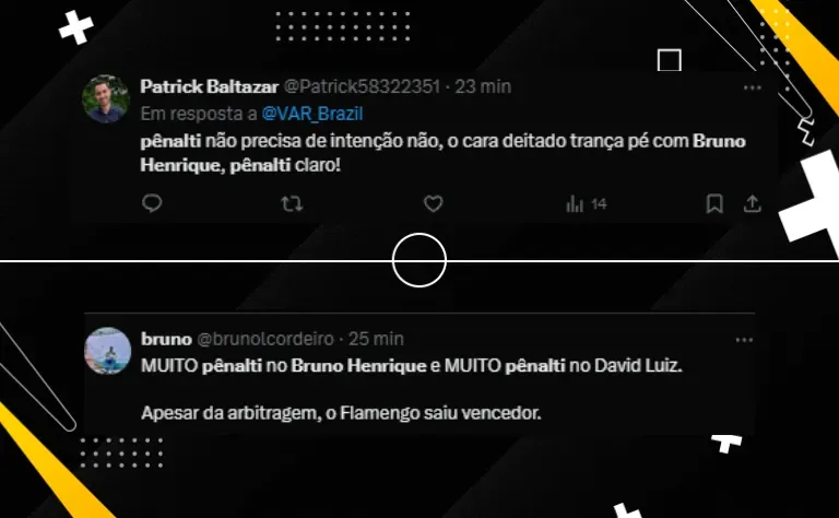 Ela citou que no primeiro momento há um jogo de corpo, uma briga por espaço sem infração por parte do ponta flamenguista, mas depois, o defensor do Flu acaba cometendo a penalidade ao derrubar o camisa 27.