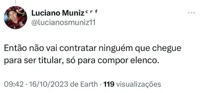 A equipe de reportagem do Uol Esporte também apurou que Tite irá começar a pensar na reformulação do elenco a partir da próxima semana. Todavia, as conversas iniciais serão feitas com tranquilidade por 2 motivos. O primeiro é que o novo treinador quer garantir ao menos a vaga direita para a Libertadores. O segundo fator é que Tite quer conhecer o plantel melhor para saber quais jogadores devem permanecer, quais devem devem sair e quais setores deverão ser reforçados em janeiro.
