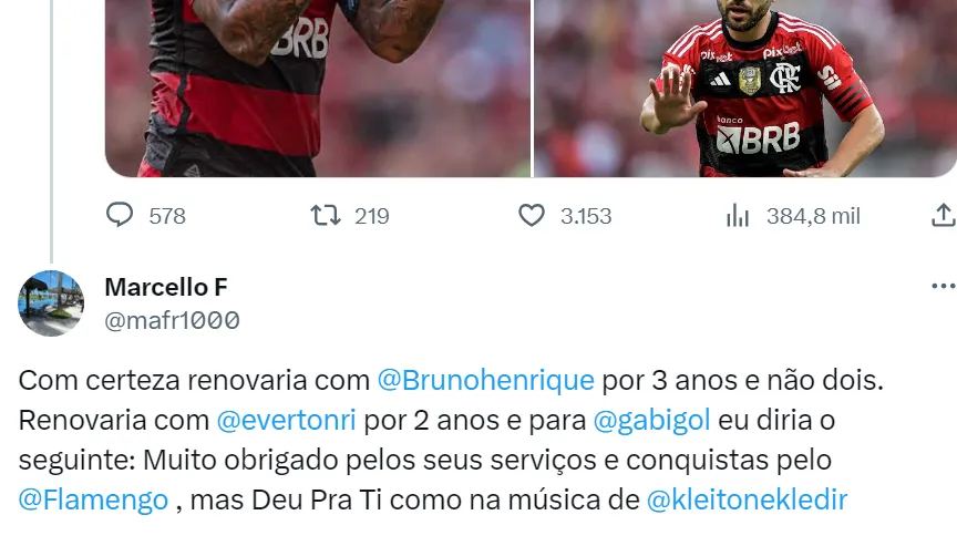 “Uma pessoa do estafe de Bruno Henrique desmente qualquer acordo com o Flamengo. Ela garante que a coisa segue como antes: houve uma segunda reunião nesta semana e não houve acordo entre as partes. O Flamengo aumentou a proposta para R$ 1,4 milhão por mês e dois anos de contrato, mas o estafe não gostou. Se o Flamengo não fizer uma última oferta com valores e condições melhores, a tendência é ele fechar com o Palmeiras”, disse Nicola.