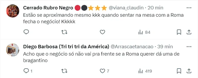 O GE ainda destacou que os italianos entendem que o Flamengo está se aproximando de valores mais aceitáveis. A Roma, que inicialmente estava irredutível diante do valor pedido, pode acabar cedendo.