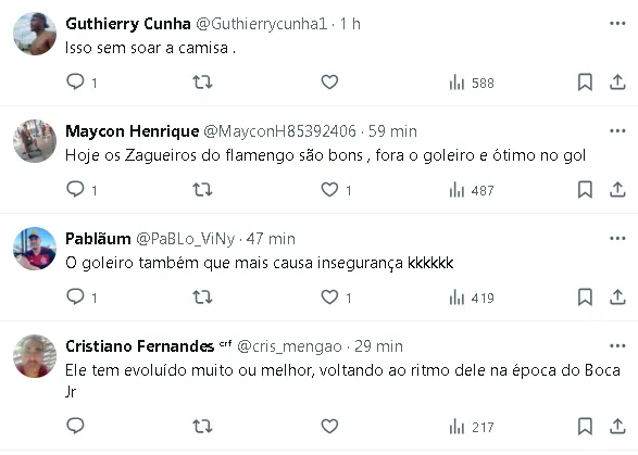 Durante o primeiro tempo da vitória por 2 a 0 sobre o Fluminense, o goleiro tornou-se o jogador rubro-negro com o maior período sem sofrer gols no século 21 em partidas oficiais, acumulando impressionantes 695 minutos de invencibilidade.