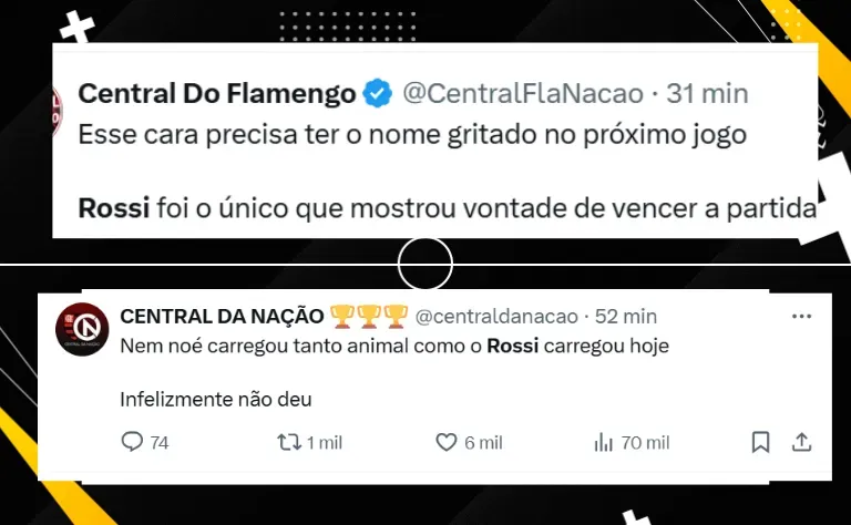 “Esse cara (Rossi) precisa ter o nome gritado no próximo jogo. Rossi foi o único que mostrou vontade de vencer a partida”, desabafou um torcedor do Mengão no X (antigo Twitter).