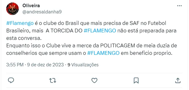 Segundo o Mundo Rubro-Negro, o entendimento é que o presidente do Mengão quer isso para buscar se perpetuar no poder do Flamengo. O entendimento é que se virar SAF, o dirigente poderia se dar bem.