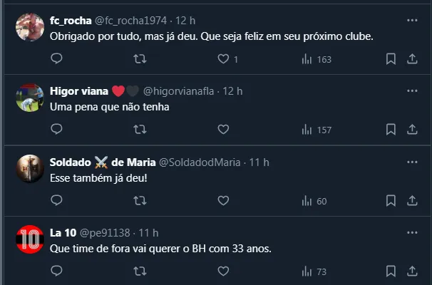 Até por isso e pelo fato de já ser um atleta de 33 anos, alguns torcedores do Mais Querido lamentaram o fato dele permanecer no plantel. O próximo compromisso do Flamengo será no próximo dia 28, em casa, contra o Millonarios (COL).