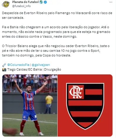 Um dos grandes ídolos da história recente do Flamengo foi o meia Everton Ribeiro. Depois de uma longa e vitoriosa passagem no Rubro-Negro Carioca, ele deixou a equipe e assinou com o Bahia.
