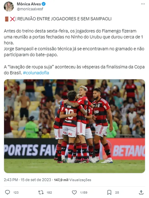 A oportunidade de levantar ao menos uma taça em 2023 é o que ainda motiva os mais de 42 milhões de apaixonados pelo Mengão. Os vários tropeços na atual temporada pressionam o time carioca na decisão, que enfrenta um adversário em fase igualmente instável, mas sem o mesmo nível de investimento. O elenco resolveu fazer uma reunião no Ninho do Urubu e o assunto da vez foi a exclusão de Sampaoli.