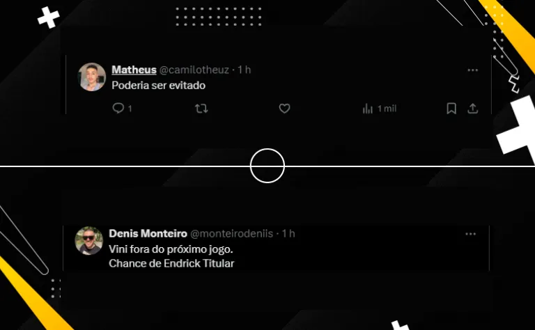 “A falta foi boba, cartão amarelo que poderia ser evitado“. A torcida também lamentou o desfalque já confirmado. Em contrapartida, outros indicaram Gabriel Martinelli como possível substituto.