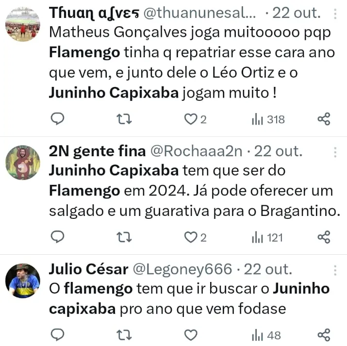 Ainda não há informações sobre qualquer negociação ou interesse oficial do Flamengo em contratar o atleta, mas a movimentação dos torcedores nas redes sociais demonstra a empolgação em torno da possível aquisição.