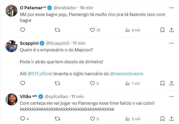 O objetivo é que seja finalizada até a próxima quinta-feira (7), data que fecha a janela de transferência no mercado nacional. Vale destacar que o contrato de Maycon com o Flamengo seria de quatro anos.