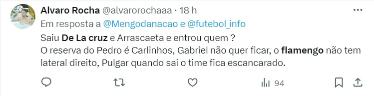 De la Cruz foi um dos principais jogadores que o Flamengo contratou para a temporada e está desfalcando a equipe na Seleção do Uruguai. Assim como outros três do elenco: Arrascaeta, Matías Viña e Guillermo Varela.