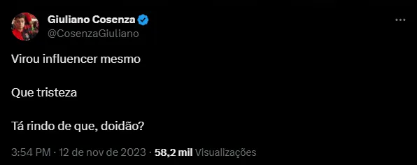 “Completamente fora do tom. Tá em Nárnia, cara???”, “Virou influencer mesmo Que tristeza Tá rindo de que, doidão?”, “Cheio de risadinha né” e “Já tá de férias, bro?”, foram alguns dos comentários.