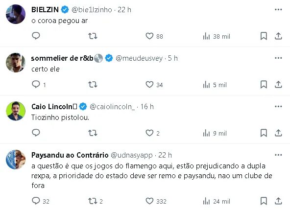 Por outro lado, uma outra parte considera suas declarações como uma manifestação de inveja em relação ao Flamengo, um dos clubes mais populares e bem-sucedidos do país.