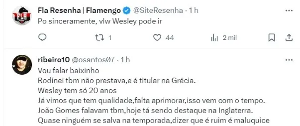 “Eu gosto dele. Wesley é um ótimo garoto. Eu o quero no Crystal Palace”, revelou o americano antes da partida entre Botafogo e Palmeiras.