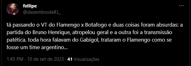 “É uma grata surpresa ele ter voltado jogando esse futebol todo. Depois de uma lesão de joelho grave como ele teve, a maioria dos jogadores demoram um pouco mais. Eu acho bem plausível que o Vasco escute o empresário dele. Teve Edílson, Jean, Júnior Baiano… o Vasco tem que mostrar essa grandeza de disputar os principais jogadores do futebol brasileiro. Por que só Grêmio e São Paulo? Por que não o Vasco? Por que o Vasco não procura o Denis, empresário do Bruno Henrique, conversa com ele e vê se há possibilidade?”, declarou.