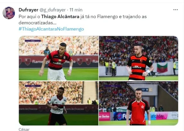 A torcida do Flamengo, nesta quinta-feira (21), puxou uma hashtag no X (antigo Twitter) com o nome do meio-campista Thiago Alcântara, do Liverpool, para que fosse contratado.
