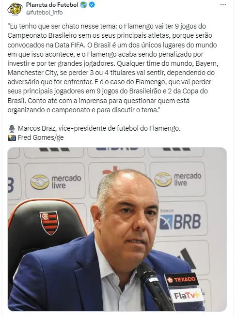 “Não só zagueiro, mas tem outras funções. Existe uma série de jogadores selecionados. O Flamengo tem que ter a responsabilidade de antecipar as situações porque temos que ter jogadores de qualidade. Esse é o ônus de uma equipe como o Flamengo”, iniciou.