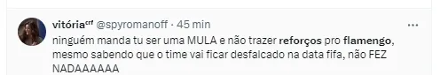 Na coletiva, apesar do clima positivo pelo ótimo começo de temporada do Mengão e pela vitória no clássico, o treinador revelou que já está cobrando a diretoria rubro-negra por algumas contratações.