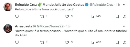 Mesmo que os dois craques vivessem situações distintas no clube, a Nação repercutiu. Enquanto David Luiz pode estar de saída do Flamengo, a torcida ainda acredita no potencial de Allan, que custou quase R$ 50 milhões ao Rubro-Negro.