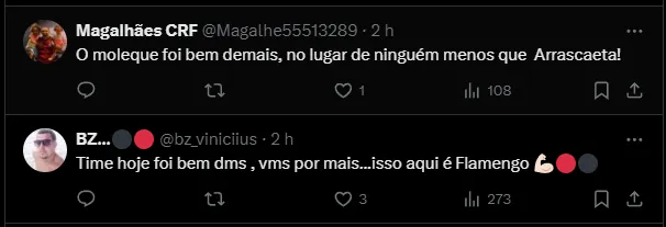 O jovem atleta foi uma surpresa entre os titulares. Todavia, não sentiu o ‘peso’ da partida, tomou conta do meio de campo ao lado de De La Cruz. Após o jogo, Tite fez um curioso comentário sobre o jogador: