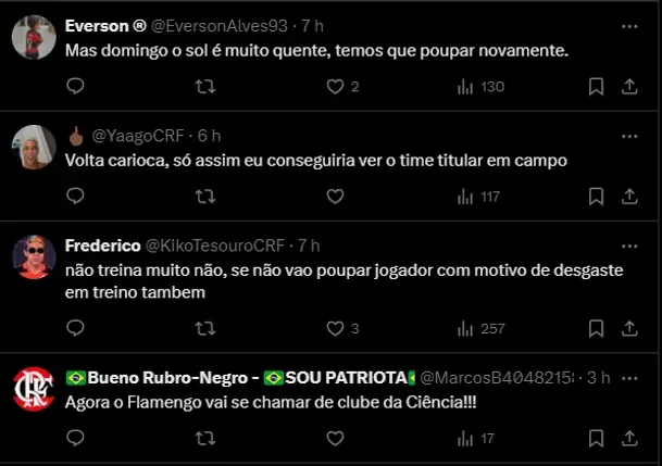 Entretanto, parece que o time titular volta para o clássico com o Botafogo. De acordo com a ‘Coluna do Fla’, boa parte dos titulares, incluindo Pedro, Léo Pereira, Arrascaeta, Varela, Ayrton Lucas e Pulgar, retornam e devem iniciar o confronto.