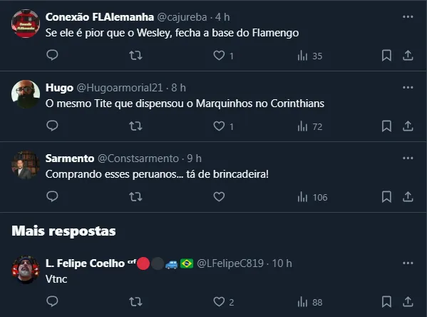 Em contrapartida, após a informação do jornalista Venê Casagrande de que o treinador não quer contar com o lateral-direito Santiago Ocampos no Mais Querido, alguns flamenguistas criticaram a decisão.
