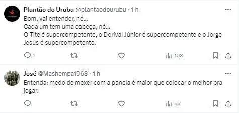 Porém, a escolha respeita uma hierarquia montada por Tite. Segundo apuração do jornalista Venê Casagrande, o comandante do Mais Querido definiu uma hierarquia sobre o quarteto de zagueiros, que conta com Léo Pereira, Fabrício Bruno, David Luiz e Léo Ortiz.