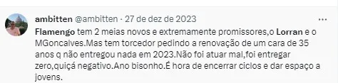 Já em relação ao jovem Lorran, que já é tratado com muita moral no Clube, a ideia é segurar o jovem, que faz 18 anos no meio do ano que vem, até o final da temporada de 2024 para valorizar ele ainda mais e conseguir mais dinheiro em uma venda.