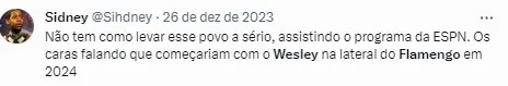 Ainda conforme a Fabrício Lopes, a diretoria trata os dois jogadores de forma diferente. Por um lado, a diretoria flamenguista espera uma boa oferta para negociar o lateral Wesley.