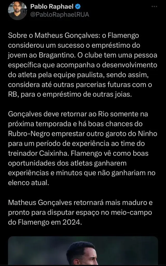 Hugo Souza estreou pelo profissional do Flamengo em 2020 e começou muito bem, mas as suas falhas levaram a sua falta de confiança e queda de produção em campo. O goleiro tem vínculo com o Mengão até 2025 e foi emprestado ao Desportivo de Chaves, de Portugal e tem contrato válido até 30 de junho de 2024. Matheus Gonçalves, uma das joias promissoras do Flamengo, ficou sem espaço em 2023 e foi emprestado ao Red Bull Bragantino até 31 de dezembro de 2023. O atacante tem vínculo com o Mengão até 2027.