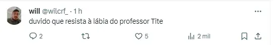 Diante da dificuldade em sacramentar o negócio, o treinador Tite decidiu tomar a frente e tomou uma atitude para contribuir para que o jogador não tenha dúvidas em vir para a equipe e que a negociação acabe com um final feliz para a Nação.