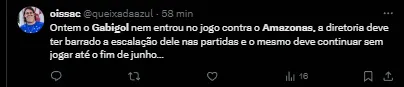 “É no dia a dia, é na aplicação, é na sequência do trabalho, é das oportunidades que surgem, é todo esse processo que a gente busca de recuperação do atleta também. Todos são importantes, o Gabi é importante”, completou.