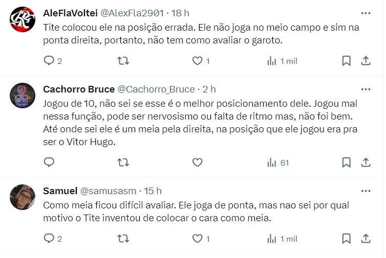 Diante do que vem sendo mostrado, e da necessidade de ter bons jogadores no elenco, o comandante tem como objetivo dar mais minutos dentro de campo para o jogador que vem mostrando evolução.