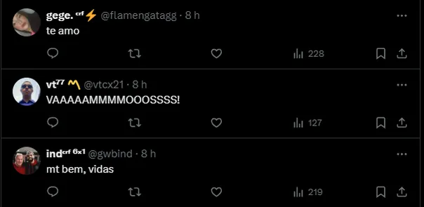 “Uma semana de preparação importante, onde oportunidades são dadas para atletas que não vinham sendo utilizados. Aquele sentimento que o técnico tem de não dar oportunidades a todos. Saindo jogadores extremamente importantes, mas oportunizando a outros também, que talvez tivessem merecido oportunidades anteriormente, mas que seguramente vão precisar do auxílio do torcedor“, disse Tite junto a ‘FlaTV’.