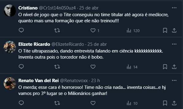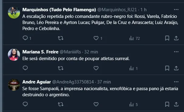 Entretanto, apesar do bom desempenho e dos resultados interessantes, o fato do técnico estar poupando alguns nomes tem sido motivo de críticas. Inclusive, uma declaração do treinador na última coletiva de imprensa chamou atenção: