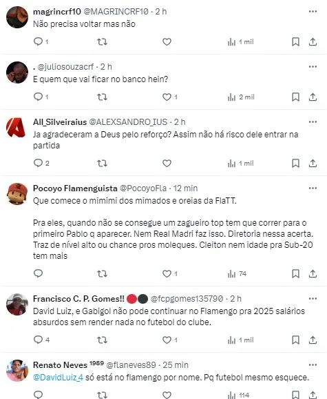 Porém, o Fla terá um desfalque de última hora para o clássico. Trata-se do zagueiro David Luiz, que foi dispensado do duelo. De acordo com comunicado oficial do Clube em suas redes sociais. O motivo do corte do medalhão, são problemas de saúde em sua família, como apontou o portal Coluna do Fla.