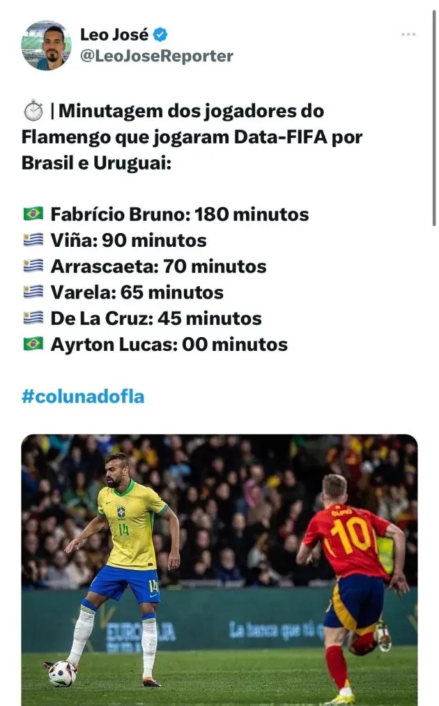 No meio dessa polêmica, o Rubro-Negro teve o retorno de seus jogadores que serviram suas respectivas seleções na Data FIFA. Quem mais teve destaque foi Fabricio Bruno, que foi titular nos dois jogos da Seleção Brasileira com Dorival.