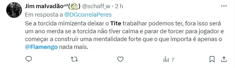 Mas, apesar da demora, o técnico Tite externou que confia na gestão, já que a prioridade é que se busque por bons nomes no mercado. Caso contrário, dará oportunidade para os jogadores das categorias de base.