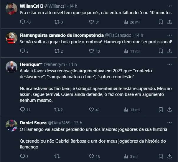 Flamenguistas comentam sobre momento de Gabi
