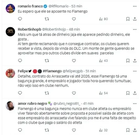 Nomes como Léo Ortiz e Juninho Capixaba, por exemplo, ainda seguem em negociação. A questão é que boatos colocavam Arrascaeta fora da Gávea, deixando a Nação bastante preocupada.