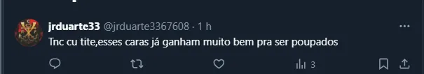 Entretanto, o assunto vazou para a torcida do Flamengo e muitos rubro-negros ficaram irritados somente a possibilidade de Tite estrear no Brasileirão poupando. Até o nome de Jorge Jesus foi relembrado durante as críticas.
