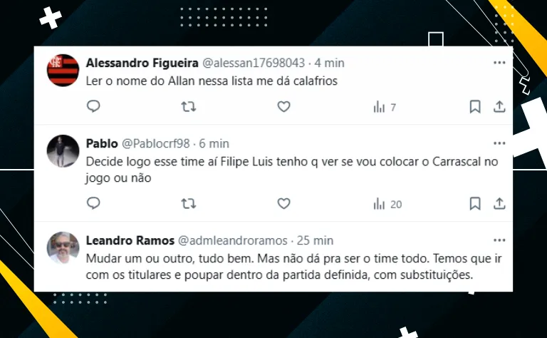 Por fim, como o treinador do Mais Querido sinalizou com a possibilidade de preservar muitos nomes do time titular, diversos torcedores foram até as redes sociais criticar o jovem técnico: