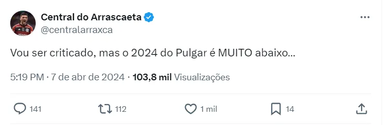 O chileno não vive o seu melhor momento na carreira com o Manto Sagrado e isso tem sido refletido diretamente em campo. Já que na estreia na Libertadores foi o erro de passe do jogador que resultou no gol de empate, quando o Mais Querido estava em vantagem numérica em campo.