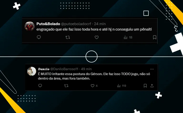 Flamenguistas seguiram comentando sobre a atitude do volante do Mengão: “Engraçado que ele faz isso toda hora e até hoje não conseguiu um pênalti“. “Gerson precisa parar de fazer esse tipo de lance, principalmente na cara do gol. Hoje em dia, com o VAR, isso não deveria acontecer mais“.