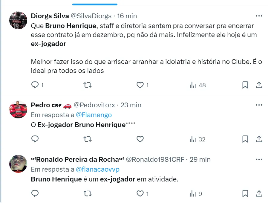 Na rede social, os flamenguistas ficaram na bronca com a atuação do camisa 27 contra o Athletico Paranaense e chamaram ele de ‘ex-jogador’ (confira os comentários ao fim da matéria).