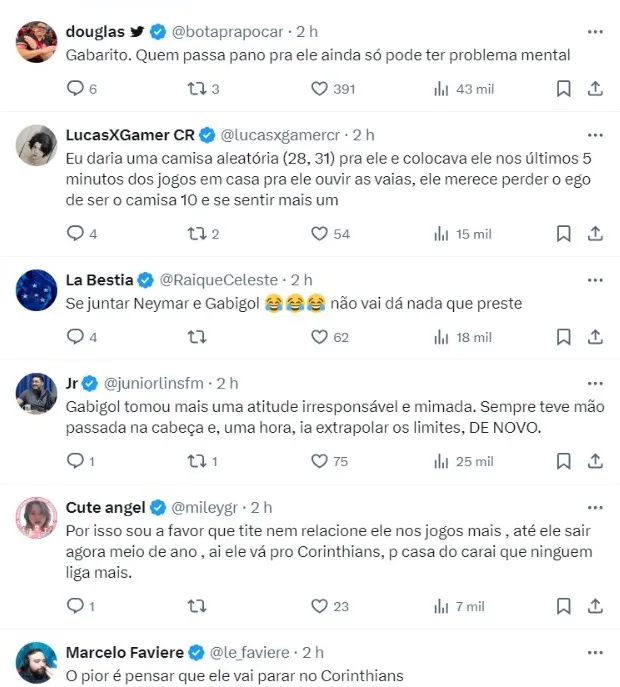 “A imagem de Gabriel erguendo troféus em nossa memória agora se mistura com a amarga realidade de sua ingratidão. E essa dor, essa decepção, são os sentimentos que restam, enquanto tentamos encontrar consolo nas lembranças de um tempo em que ele foi nosso herói“, diz trecho da nota – veja na íntegra abaixo.