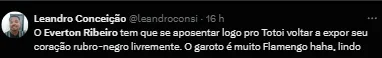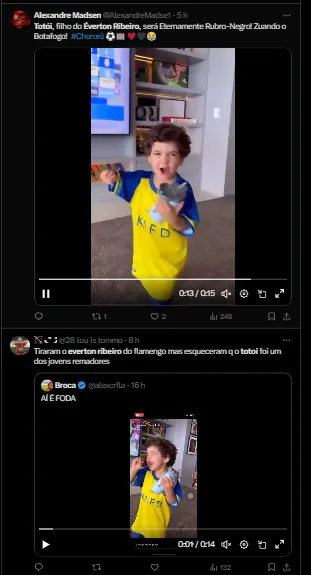 Essa repercussão se deu nas redes sociais devido ao fato de que Totoi, filho de Everton Ribeiro, provocou o rival do Mengão cantando uma música famosa que a Nação canta para provocar.